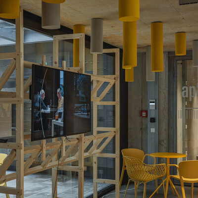 Nachdem im März 2022 die beiden Architekturbüro ins SVAP House am Marlene-Dietrich-Platz 1 gezogen sind, wurden die Räume im Erdgeschoss mit seinen Mietern im August 2022 lebendig.